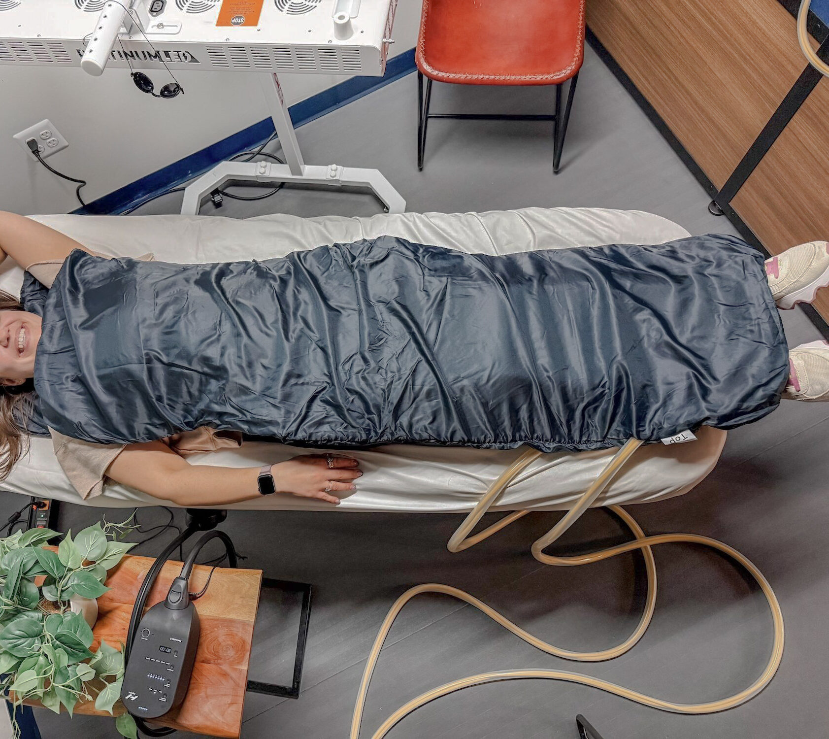 The dual-mat technology strengthens your body’s magnetic field with vibrations that recharge your cells. During the process, your cells receive more electrons and optimize the transport of water and nutrients.